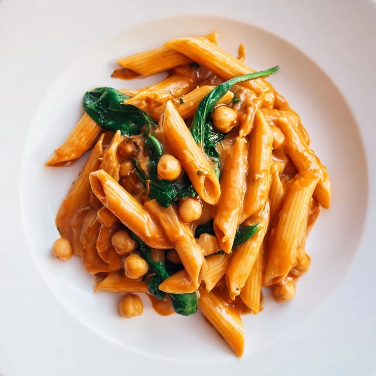 Save to Pinterest One rainy Thursday evening, I opened my pantry and found chickpeas, a lonely can of tomatoes, and some wilting spinach in the crisper. I wasn't in the mood for plain pasta again, so I started throwing things into a pan with no real plan. The garlic hit the oil and filled the kitchen with that unmistakable warmth, and suddenly I was improvising something that felt both indulgent and practical. What came together was creamy, rich, and surprisingly elegant for a dish born out of leftovers and luck.