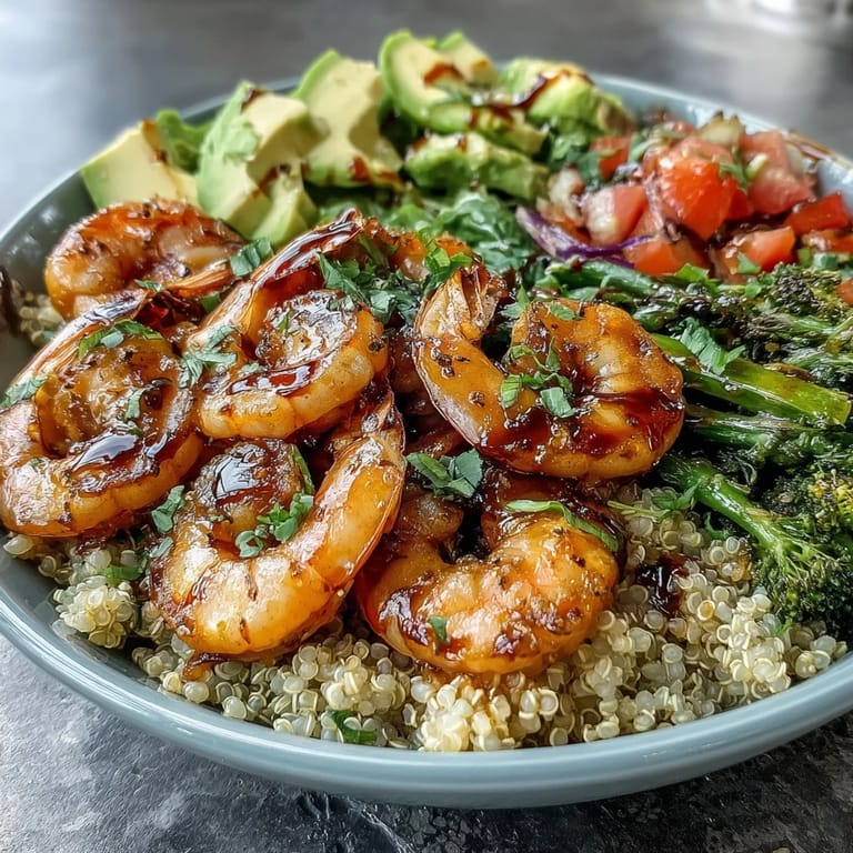 Save to Pinterest There's something about assembling a Buddha bowl that feels less like cooking and more like creating art on a plate. I discovered this particular combination on a Tuesday afternoon when my fridge was overflowing with fresh vegetables and I'd grabbed some beautiful shrimp at the market. The result was so vibrant and satisfying that I've been making variations ever since, each one a little conversation between what I have on hand and what my body actually needs that day.